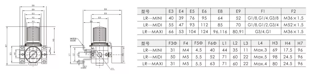 Регулаторът на налягането се използва за намаляване на налягането на сгъстен въздух, регулиране и понижаване на по -високото налягане в входа до налягането на изхода, което отговаря на налягането на употреба, и поддържа стабилността на регулираното налягане на изхода. Регулаторът на налягането на Festo Type LR е ръчно регулируем директно действащо обикновена диафрагмена структура регулатор на въздуха. Може да се комбинира с филтри и смазка, за да се образува FRL единица.