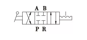 Когато се превключи на зъбното колело 02, изпускателният порт B освобождава въздуха, A отдушниците на изпускателния порт и цилиндърът се простира.