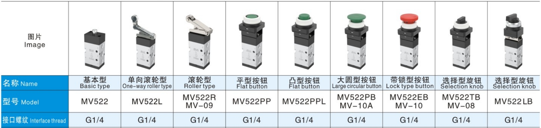 Механичната нишка на клапана на бутона MV522 е G1/4, с налягане на зона от 0-0,8MPa и не изисква смазване. Създаването на лесно поддържане и обслужване, намаляване на разходите за престой и поддръжка.