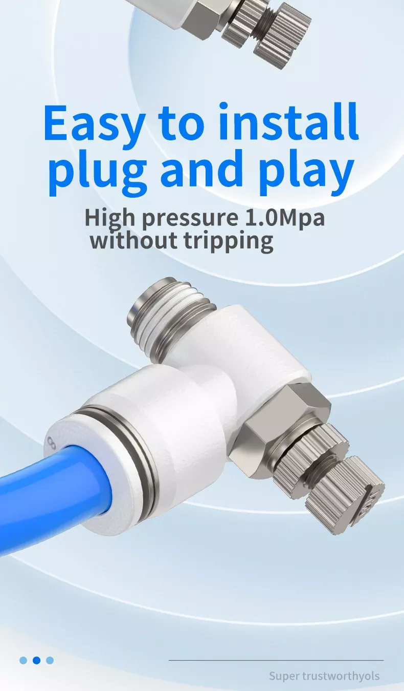 Предлагани както във входящ, така и в изпускателен дроселиращ тип, SL клапаните могат да бъдат директно монтирани на цилиндри, за да спестятфитинги, тръбопроводи, и време за инсталиране. Въртящият се дизайн позволява гъвкава ориентация на тръбите, а регулиращото колело със заключващ механизъм осигурява фин и стабилен контрол на потока.