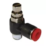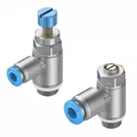 Това са входящи и изпускателни дроселни клапи, разграничени от маркировките на капачката „B“ и „OUT“. Те могат да се използват заедно: входната дроселна клапа регулира потока на подавания въздух, докато изпускателната дроселна клапа контролира скоростта на цилиндъра за по-прецизен контрол на системата.