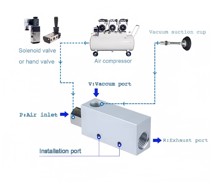 Генераторът на вакуум е нов тип ефективен, чист, икономичен и малък вакуумен компонент, който използва въздушен източник с положително налягане, за да генерира отрицателно налягане. Това прави много лесно и удобно получаването на отрицателно налягане на места със сгъстен въздух или на места, където се изискват както положително, така и отрицателно налягане в пневматична система.