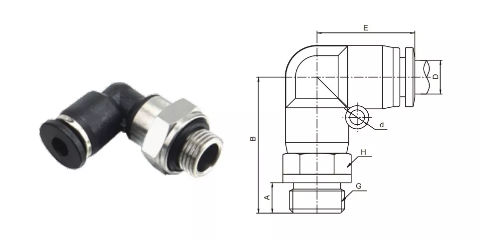 PL-G мъжкият тласък в монтажа на тръбата е 90-градусов конектор на лакътя и G резба, идеална за използване в затворени пространства или където е необходимо пренасочване на тръбите. Сравнете с уплътняващи пръстени за предотвратяване на изтичане на въздух или течност.
