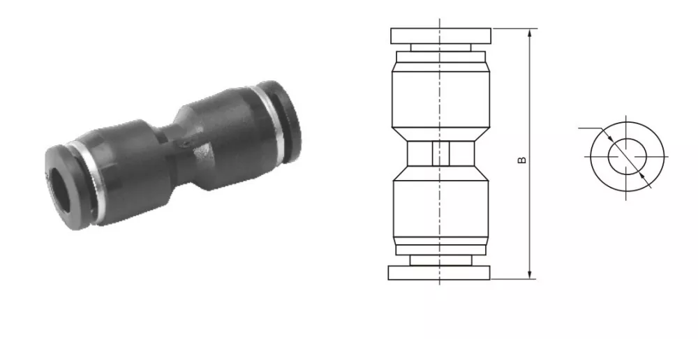 PU Union Straight Push в монтаж на тръби са дизайн на конектори Push-to Connect за използване с PU (полиуретанови) тръби в пневматични системи.