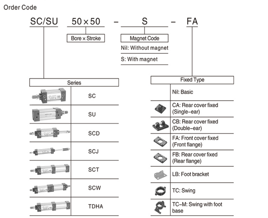 Стандартният цилиндър от серията SU са подходящи за индустрията за механично производство, приложим за пневматичен контрол и изпълнение в различни машини, автоматизирани производствени линии и други.